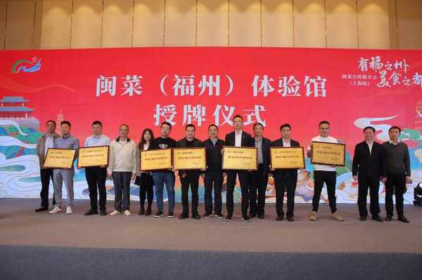 福山福水出福味。閩菜,以擅制山珍海味著稱,融匯南北,並蓄八方,歷經5000餘年古閩越族文化與中原文明的交流與融合,博采眾長,囊括瞭山海的滋味,構成瞭一個食材獨特、技藝高超、底蘊深厚的飲食文化體系,位列中國八大菜系。活動現場主辦方授予上海龍一海鮮、上海海中舟、上海榕港海鮮、上海滬華酒店、上海錦豐大酒店、上海新閩記、上海甲東南閩菜館等22傢上海市經營的閩菜餐廳“閩菜(福州)體驗館”,搭建成起兩座城市之間的閩菜交流、傳播的新平臺,讓閩菜餐飲文化在上海進一步落地生根,助推對閩菜文化的傳承和發展。