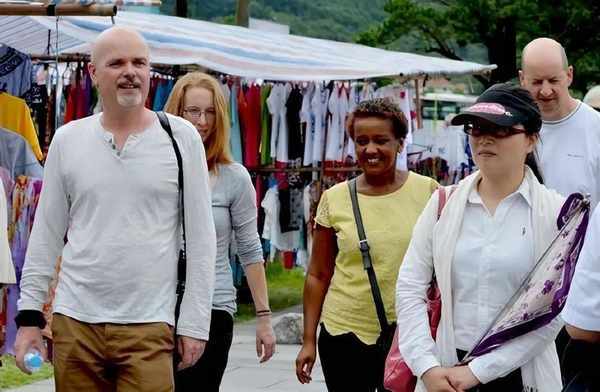 張大哥也想宣傳洛陽,因為他無所事事,所以他找瞭幾位外國遊客聊天。張大哥正好找到瞭幾位來自美國的遊客。他們興奮地說:“洛陽真的很有趣。不僅有美味的食物,還有精致的牡丹花。”
