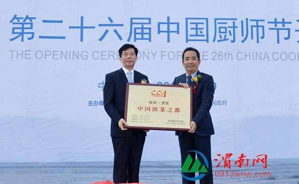 2016年10月20日,第26屆中國廚師節在渭南舉辦,中國烹飪協會向渭南頒發“中國陜菜之都”牌匾。記者 許艾學攝