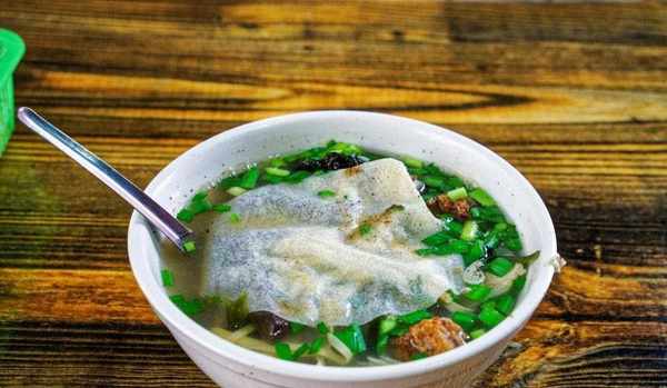 洛陽號稱是最愛喝湯的城市,不翻湯就是其中一道,這個名字就很讓人好奇瞭,據說早年間,老百姓為瞭方便,拿不用翻個就能熟的餅放在碗裡,澆上骨頭湯就能吃瞭,這道美食已經有120多年的歷史瞭。現在的不翻湯用料豐富,兩張綠豆不翻餅,放上紫菜蝦皮粉條等十種配菜,選用豬腿骨,土雞海帶等食材熬制三個小時以上的湯頭沖制,口感酸辣,油而不膩。