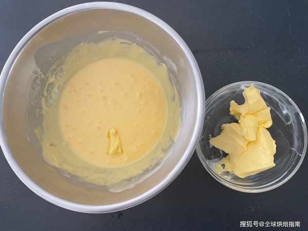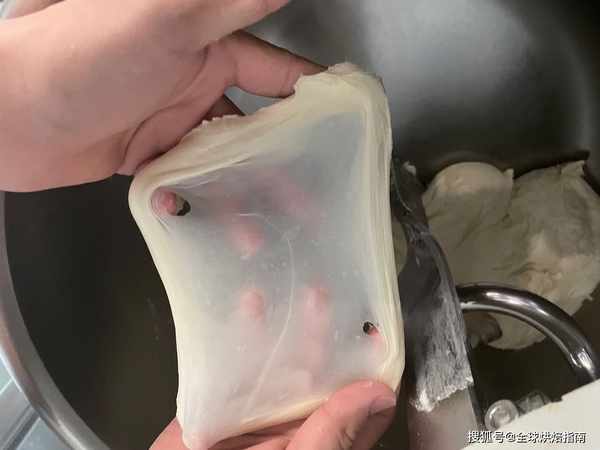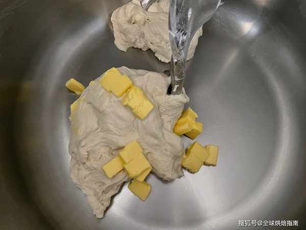 2 / 七成筋加入黃油,打至完全擴展狀態;