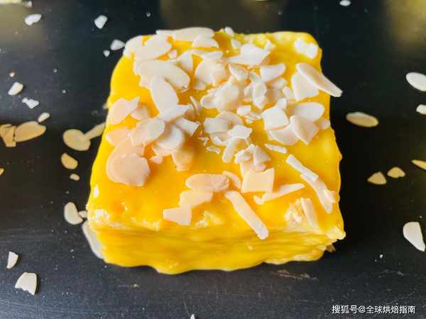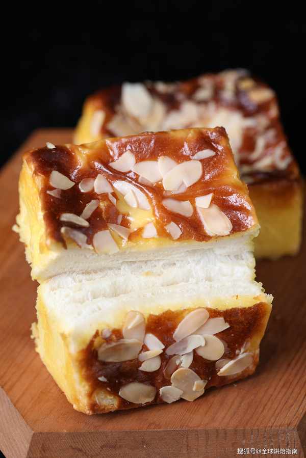 以吐司麵包,起司,杏仁片,糖等為食材,經特殊烘烤成為金黃色的方塊形狀,加上銷售量驚人,被稱作"金磚"美食。