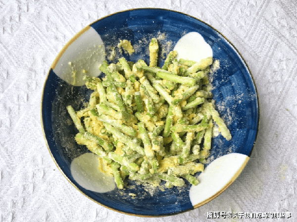 1、蒜薹掐頭去尾,洗幹凈後切成3厘米左右的長段,放入盆中加入一勺鹽拌均勻,醃制10分鐘。蒜薹變軟後打入一個雞蛋,加入一勺玉米粉,用筷子攪拌均勻,讓每根蒜薹都裹上一層薄薄的玉米粉。