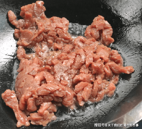 2、生薑切絲,紅辣椒洗幹凈後切絲。燒一鍋開水,放入一勺鹽,倒入蒜薹煮2分鐘,撈出過涼水,瀝幹水分。另起鍋,加油燒熱,倒入醃好的牛肉,快速翻炒至變色,盛出備用。