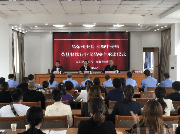 為積極支持“天府旅遊名縣”創建和營造2023年“美麗中國”全國門球大賽(四川榮縣站)比賽期間放心舒心消費環境,展現榮縣餐飲人在新時代下精神面貌,5月9日,自貢市榮縣舉行餐飲行業食品安全承諾儀式,縣市場監管局、縣餐飲協會、全縣餐飲行業代表等相關負責人共計60餘人參加。