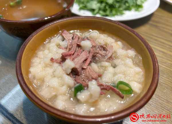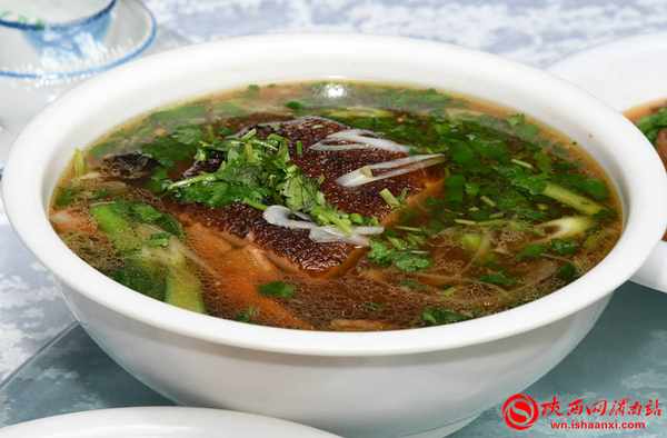 “天上龍肉,地上驢肉”的俗語,是說驢肉與龍肉一樣美味。在蒲城縣就有這樣一傢特色泡饃店,不用傳統牛羊肉,而是精選關中驢肉、驢骨,配以二十多種中草藥以及天然香料,煮燜長達12小時,最大限度的保存驢肉及湯的營養精華及營養價值,肉味香醇,面餅甘酥,湯味鮮美。