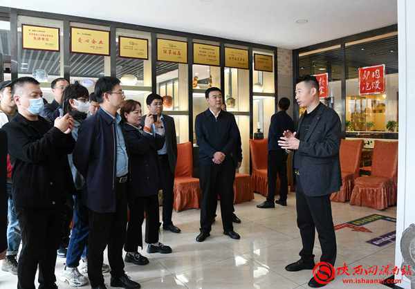 采風團一行聽取寶駒軒小毛驢驢肉泡饃情況介紹。記者 王清 攝
