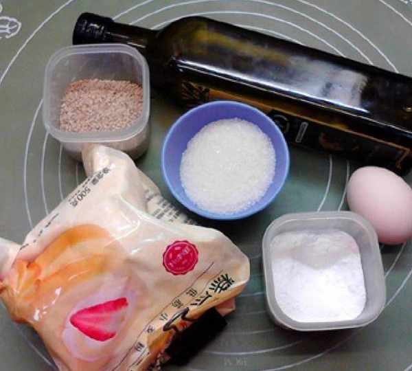 原料:雞蛋、橄欖油、低筋粉、白砂糖、無鋁泡打粉、熟白芝麻。