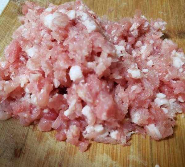 第3步、豬肉剁成餡兒。