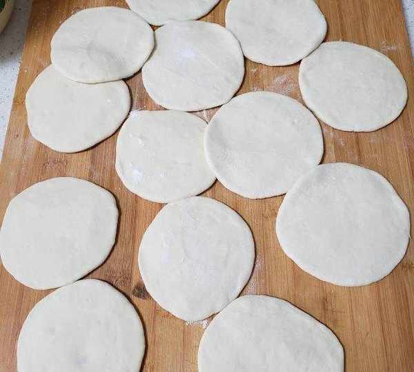 第10步、搟成圓餅狀,中間厚四周薄。