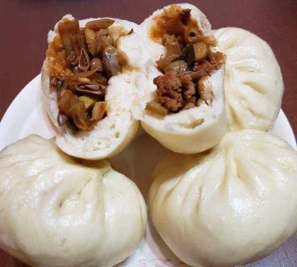 原料:面粉、梅豆、豬肉、酵母、純凈水、蒜、蔥、食用油、鹽、老抽。