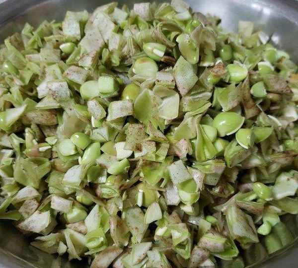 第4步、梅豆角切碎。