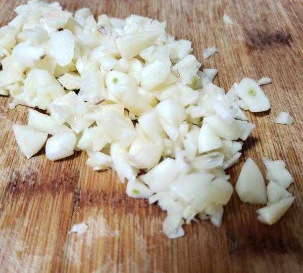 第1步、蒜切碎。