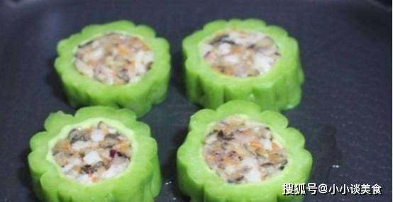 看到上圖之後,大傢應該知道瞭一個一定的方法。苦瓜的形狀我就不多說瞭。隻是鏤空的,中間是蝦肉、蝦米和肉餡。按一定比例混合,馬上填入中間,先炒後入水,一定要用小火!