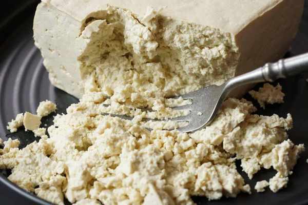 2.將冷卻的老豆腐用叉子壓碎,加入一顆雞蛋和少許胡椒粉攪拌均勻備用。