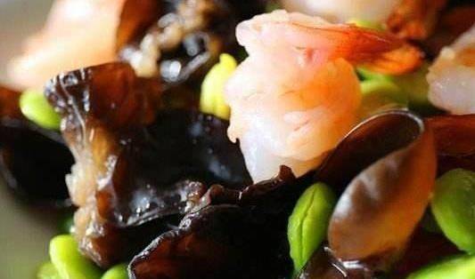 原料:蠶豆100克、黑蘑菇100克、蝦仁100克、鹽少許、食用油少許