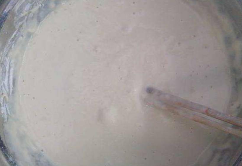 第三步:準備一個碗,將雞蛋打散,根據需要撒鹽,打勻,再倒入適量面粉,拌勻成面團。