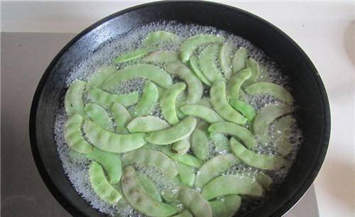 第一步:取出鏡片,先撕掉筋,再從頭撕尾。如果你覺得它太大瞭,你可以把它掰成兩半。然後用水清洗鏡片,揉搓鏡片數次,取出瀝幹。開鍋後立即在鍋中燒開適量的水。水燒開後,倒入扁豆,加入適量的鹽,2-3分鐘後,撈出瀝幹水分。