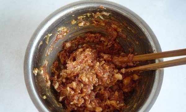 第二步:將準備好的豬肉洗凈。不想肉有腥味的話,可以把豬肉泡在水裡多泡一會兒。這樣可以吸收豬肉的血水,去除腥味。浸泡後,將肉取出,然後將豬肉剁成肉末。肉末切好後,加入蔥、薑、鹽、料酒等上述調料,將調料與肉拌勻。
