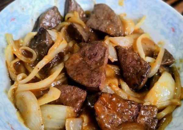 所需材料:豬肝、洋蔥、醬油、鹽、糖