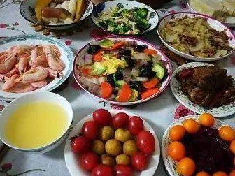 水果盤:餐桌上的另一個亮點是水果盤,小西紅柿和龍眼搭配、金桔和火龍果搭配,不過媽媽每次隻吃一個小西紅柿。
