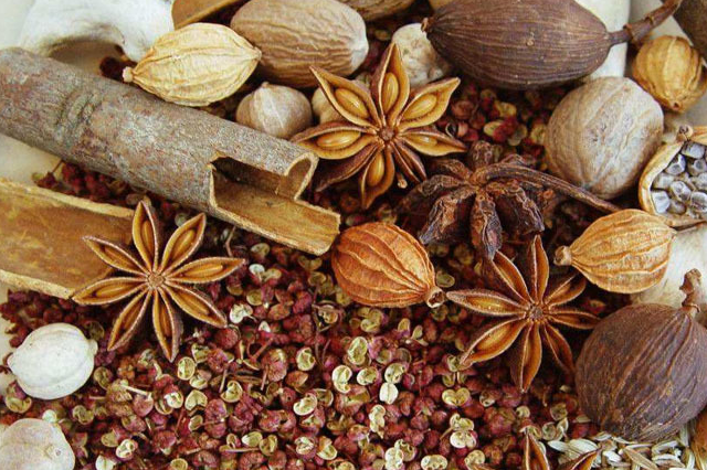 香葉兩片、桂皮1塊(1指長度的),完整大料1個,白寇1個,幹辣椒和花椒各一把,放在一起打成混合香料粉,香料粉和孜然粉的配比為3:2,總量根據個人口味清重自行調節,一般來說500g牛肉放3勺香料粉和2勺孜然粉即可,傢裡沒有料理機的朋友可以用麻辣五香粉代替香料粉。