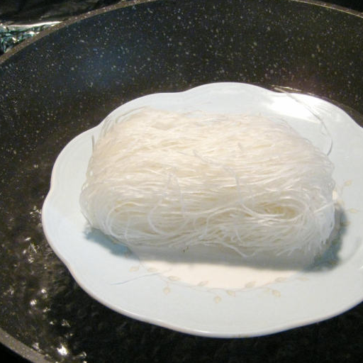 第8步、放熱水約1/2碗沒過肉面,放入蒸過的粉絲,稍煮一下,用筷子撥散粉絲,撒胡椒粉1/3小匙;