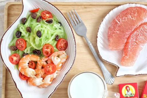 5,西柚切片,生菜撕碎裝飾,淋上低熱量的沙拉醬即可食用。