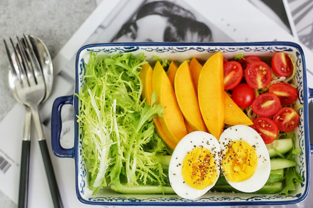 芒果1個,苦苣一根,雞蛋1個,聖女果適量,黃瓜半根