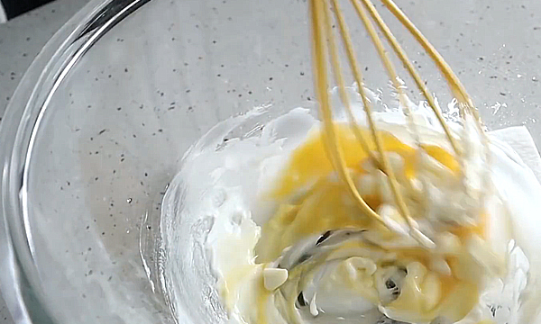 2.然後加入糖粉攪拌,再加入雞蛋,攪拌至像奶油一樣光滑即可。