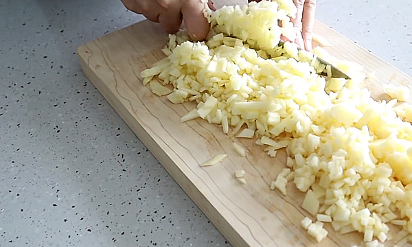 8.我們開始制作蘋果碎,蘋果去皮切成小碎塊。