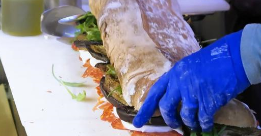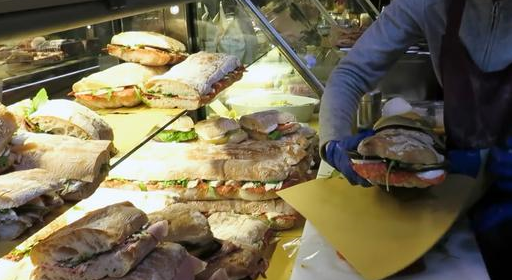 你見過最大的漢堡是多大的?在去倫敦旅遊的時候,在街頭的一個美食攤上,看到瞭一種10多斤重的漢堡,簡直太大瞭,買回去吃的人都是帶回傢全傢一起吃的。來看看這種超級大漢堡是怎麼做的吧。先是從這個超香腸上切下好多的香腸片。再從一個很大的醃瞭好幾年的生火腿上切下很多的生火腿肉。