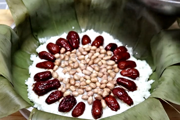 【原材料】:糯米、粽葉、大棗、白糖、紅糖、花生米。