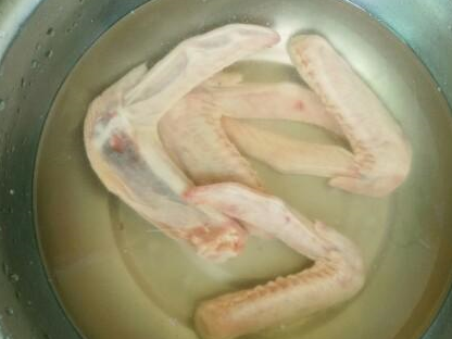 6.鍋中加入適量的水,淹沒過鴨翅。煮幾分鐘入味以後換小鍋。