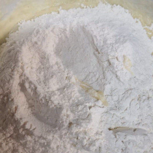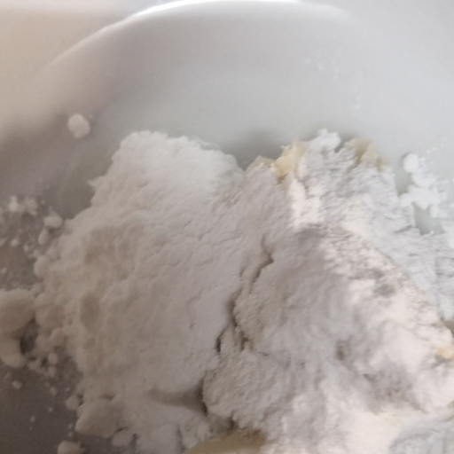 第3步、泡打粉,小蘇打,鹽,低粉過篩與豬油糊混合,揉搓成面團。