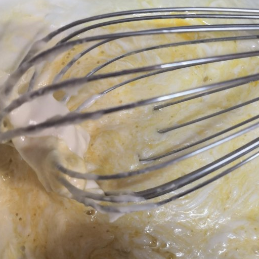 第2步、打入一個雞蛋,攪拌均勻至無顆粒。