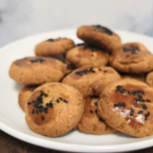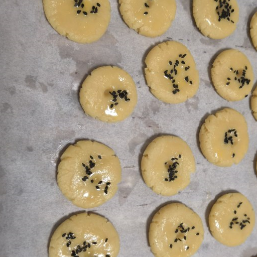 原料:低粉、豬油、綿白糖、小蘇打、泡打粉、雞蛋、鹽、黑芝麻。