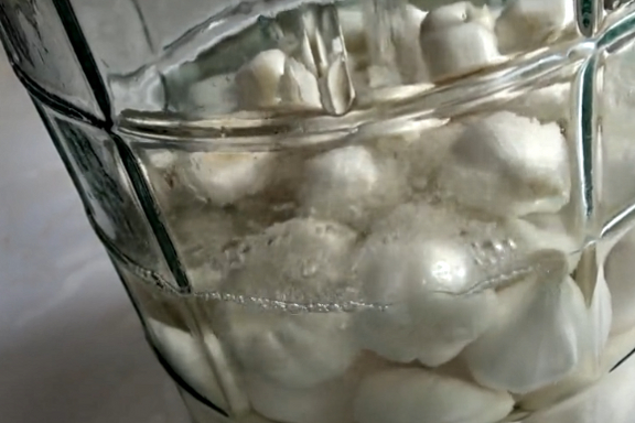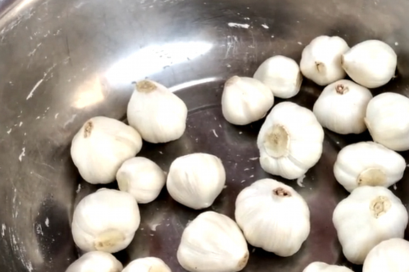 1:醃制大蒜的時候,先把大蒜的外皮都剝掉,隻留下1層或者是2層內皮就可以,在大蒜裡面加上少量的食鹽醃制一晚上,這一步可以去除大蒜的辣味,如果把這一步忘記的話,醃制出來的糖蒜,不僅發甜,而且還有很重的辣味。