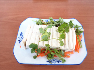 菜名:涼拌豆腐。特色:香辣可口,清清爽爽,簡單易做。食材:豆腐、胡蘿卜、香菜、麻辣醬、生抽、食用鹽、香油、雞粉。