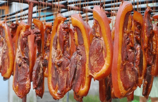 其次,邵陽臘肉註重選料,加工嚴格。邵陽臘肉在選料上講究天然、健康、無污染的原則。在加工過程中,先用鹽醃制,再進行晾曬、熏制、熟制等多道工序,保證瞭臘肉的鮮美和口感。