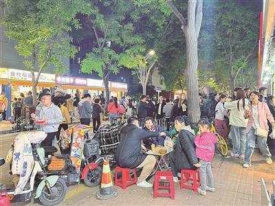 夜市是一個城市最具煙火氣的地方,夜市經濟也是活躍消費市場的重要載體。為落實今年太原市政府工作報告中“大力發展夜間經濟,推進迎澤區省級夜間經濟試點建設,鼓勵各縣(市、區)舉辦特色購物消費活動,持續提升城市‘煙火氣’”的要求,老軍營街道打造出“美食一條街”,充分挖掘“軍營文化”,在原有的50傢成熟小吃品牌基礎上,引入31傢美味小吃店,形成瞭新的經濟熱點。