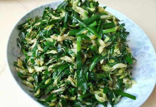 做法:槐花洗後焯水,先將韭菜翻炒幾下,加入槐花、精鹽,炒勻即可。