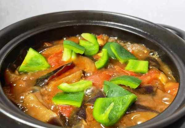 做法:茄子切滾刀塊,放鹽水中泡一泡,擠去一些水分;番茄塊入鍋,多翻炒幾下,加入茄子、番茄醬、生抽、精鹽,燜三、四分鐘即可。