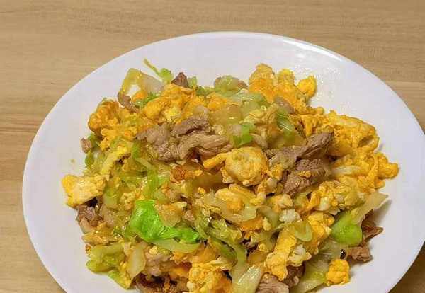 做法:先將雞蛋煎好出鍋,加入瘦肉炒至變色,加入卷心菜炒至變軟,加入雞蛋、生抽、精鹽,炒勻可出鍋瞭。