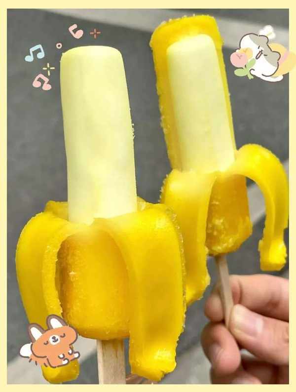 除瞭可以剝的香蕉外,造型還做瞭“檸芭蕉”,就很適合傢裡有小孩子的寶媽多囤點,如果我小時候也有這些好玩的造型冰淇凌可以選擇,那我一定會非常印象深刻,而且也會非常感謝母上大人瞭~