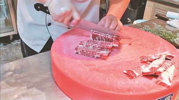 嚴格按照標準切肉。 圖片均由本報記者 毛曉星攝