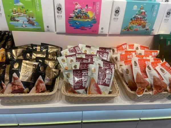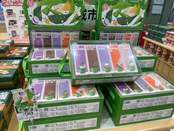 5月9日,記者走訪市場發現,在昆明部分超市、面包店、農貿市場等場所,豆沙粽、火鍋粽、牛肝菌粽、雞樅粽、鮑魚粽、鮮肉粽、梅幹菜粽等口味的粽子都已擺上“C位”。在昆明德和罐頭食品有限責任公司宜傢店內,除瞭以往已有的口味,一款名為“夏天的一杯粽子”禮盒格外引人註意,這款粽子的包裝獨具匠心,很像奶茶杯,看起來格外新奇。