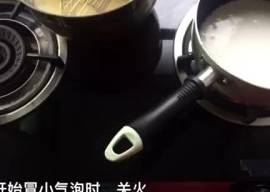 將牛奶煮至微沸。加入兩包伯爵紅茶燜五分鐘