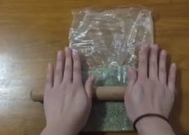 以上材料混合壓拌成面團,放入保鮮袋中搟平
