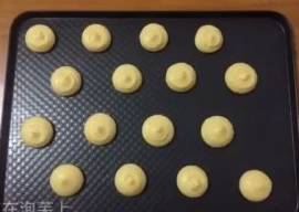 將面糊裝入裱花袋。酥皮蓋在泡芙體上面。入烤箱。上下火190度。中層。25-30分鐘